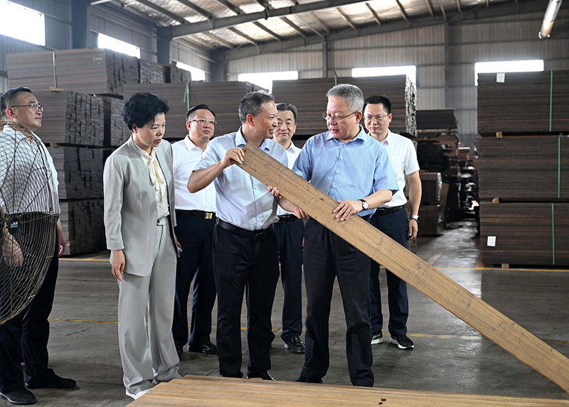 2025年6月16日,省政協副主席虢正貴來湖南桃花江竹材科技股份有限公司調研生態(tài)資源轉化與特色產業(yè)融合發(fā)展。公司董事長、省人大代表薛志成陪同并介紹情況。虢正貴充分肯定了桃花江竹材在竹資源利用及竹特色產業(yè)融合發(fā)展所取得的成果,他鼓勵企業(yè)繼續(xù)發(fā)揮龍頭優(yōu)勢,充分利用好桃江資源稟賦和產業(yè)優(yōu)勢,深化產學研融合,提升竹產業(yè)附加值,為民族地區生態(tài)資源高效轉化和特色產業(yè)融合發(fā)展探索更多經驗。
